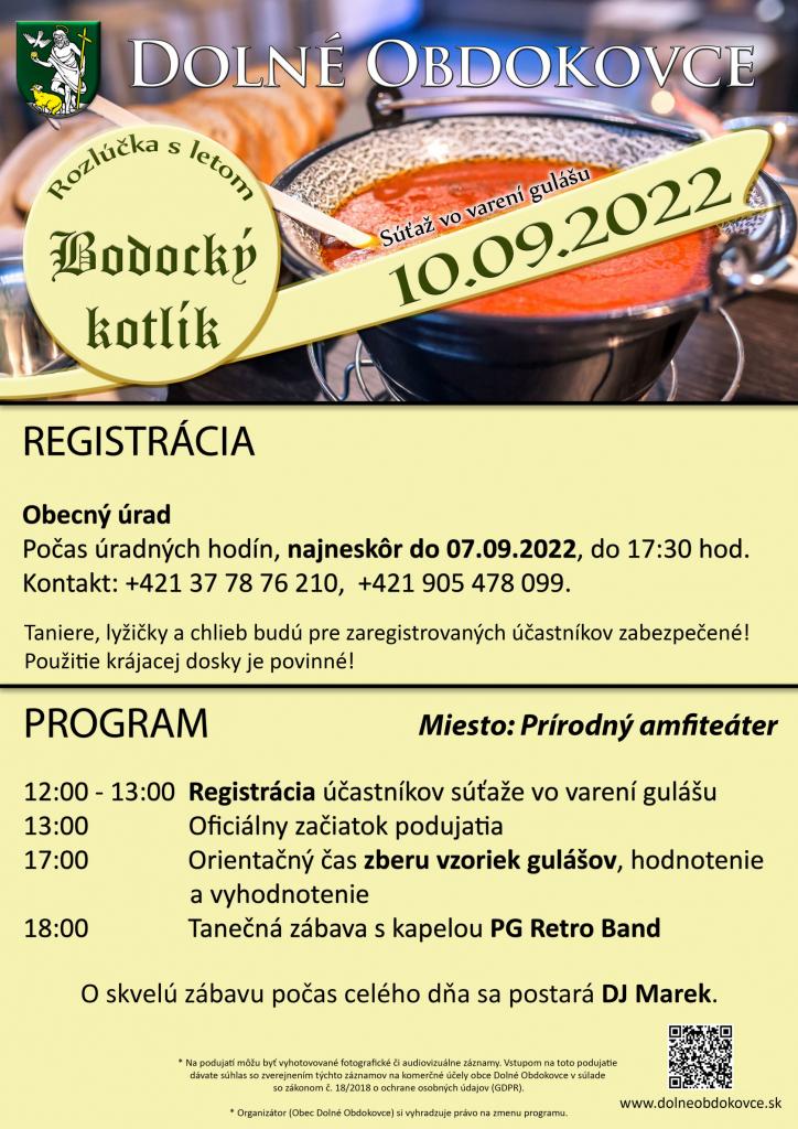 Az Alsóbodok község szívélyesen meghívja Önöket 2022. szeptember 10-én az egyedülálló, községünkben immáron hagyományos, 2022-es évi Bodoki bogrács gulyásfőző versenyre.