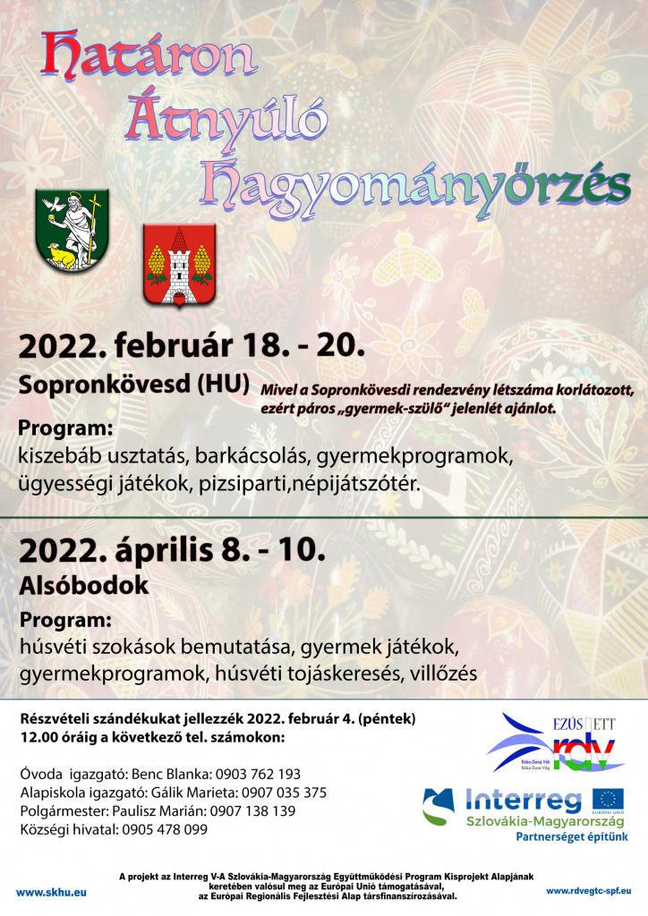 - Mivel a Sopronkӧvesdi rendezvény létszáma korlátozott, ezért páros „gyermek-szϋlő“ jelenlét ajánlot.